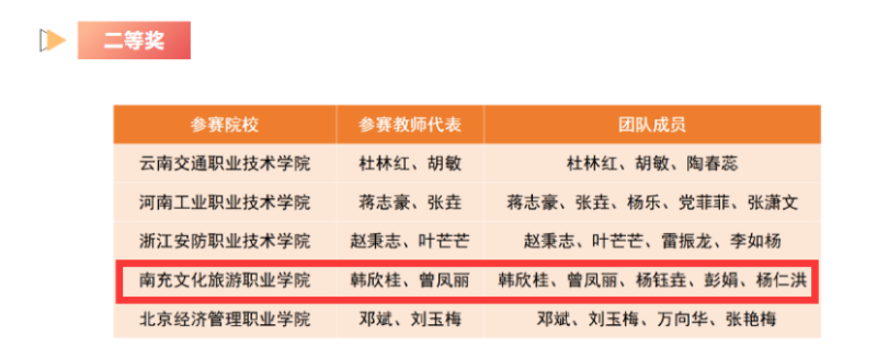 我院基础教学部教师团队韩欣桂、曾凤丽、杨钰垚、彭娟、杨仁洪参加该次比赛,历时3个月的初赛、复赛,成功晋级全国半决赛。参赛作品Business Travel结合我院学生实际情况与我院文旅特色而设计。团队教师通过整合教材内容、深挖教材思政元素,有效使用数字化教学资源与教学平台,合理设计线上与线下融合、教学与评价结合的教学流程,激发学生学习兴趣,提高课堂教学质量。